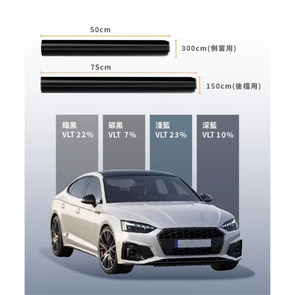 淺藍:透光率 23%,紫外線阻隔 99%,紅外線阻隔(隔熱率) 80%