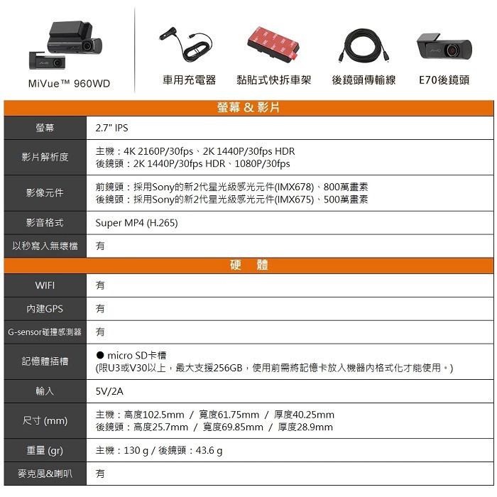 【MIO】960WD 前4K後2K 行車紀錄器