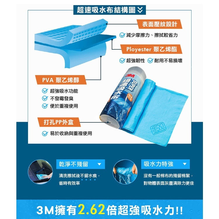 吸水力特強,清洗擦拭不留水痕,省時有效率