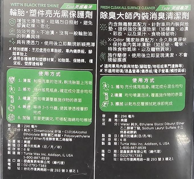 T218 輪胎、塑件亮光黑保護劑 (296毫升)