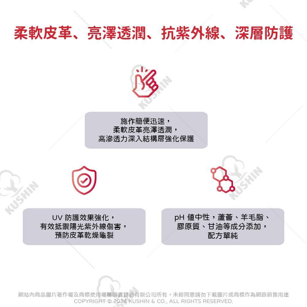 柔軟皮革、潔淨透潤、抗紫外線、深層防護,完美呈現!【麂皮不適用】